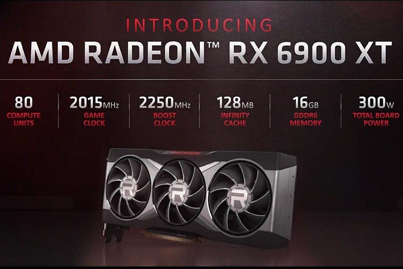 RDNA cores: 4,608 Base clock: 1,825MHz Boost clock: 2,250MHz TFLOPs: 20.74 Memory: 16GB GDDR6 Memory clock: 16GT/s Memory bandwidth: 512GB/s