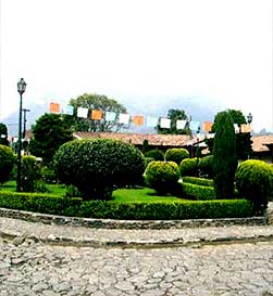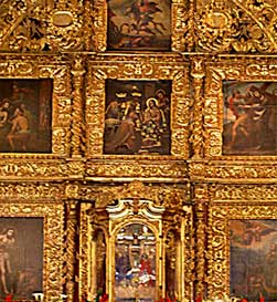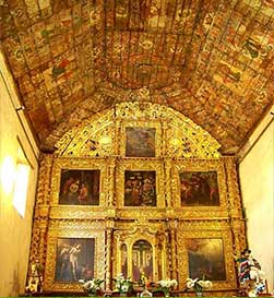 Decoración y pasajes: El plafón ricamente decorado con pinturas de ángeles, querubines y diversos motivos religiosos, corresponde a finales del siglo XVIII y es considerado uno de los más bellos en el estado de Michoacán. Mediante una minuciosa lectura iconográfica realizada por el arquitecto Manuel González Galván, se reconoce en el plafón dos ciclos: uno mariano, que va de los pies de la iglesia hasta el centro, formado por las escenas de La Inmaculada Concepción, La Virgen con Santa Ana y San Joaquín, La Visitación, La Asunción y la Coronación de la Virgen. Y el otro cristológico, el cual abarca del centro hacia el presbiterio, en él se encuentran plasmadas La Asunción, una escena que pudiera